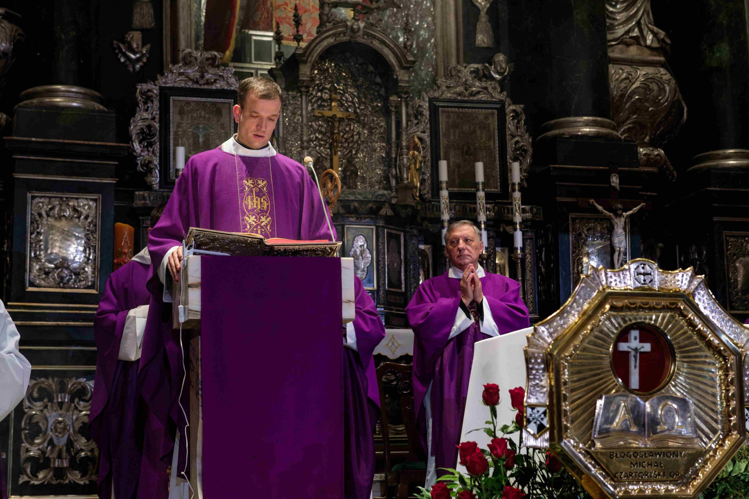 Relikwiarz patrona miasta Jarosławia został wniesiony do świątyni podczas Mszy świętej, której przewodniczył abp Adam Szal, ordynariusz przemyski. Obecni byli przedstawiciele rodzin Czartoryskich, Radziwiłów i Dzieduszyckich. Relikwie to podarowany jarosławskim dominikanom alabastrowy krzyż wykonany własnoręcznie przez ojca Michała dla jednej z bratanic na jej I Komunię świętą. Darczyńcami jest rodzina Konstantego Radziwiłła, który przedstawił zgromadzonym historię krzyża, z którą można zapoznać się tutaj.